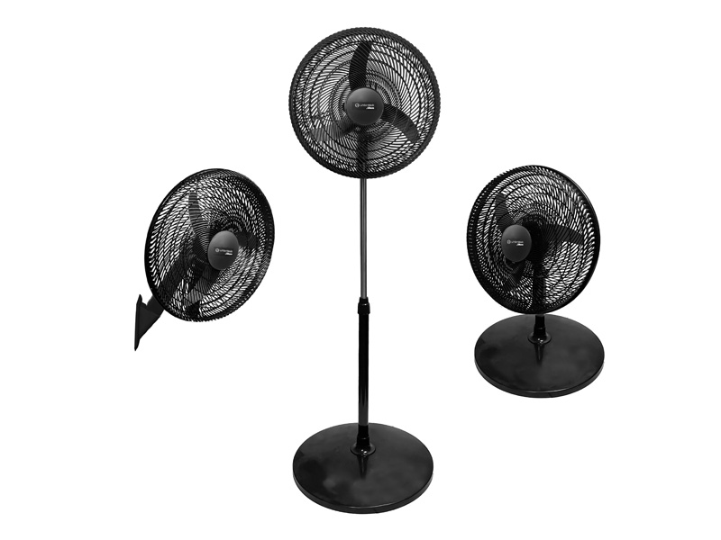 El ventilador cuenta con un pie redondo plástico que otorga firmeza y estabilidad, y un barral regulable en altura hasta 1,65 m, permitiendo adaptarlo a diferentes ambientes. Sus tres aspas plásticas y parrillas espiraladas garantizan seguridad y un flujo de aire eficiente.