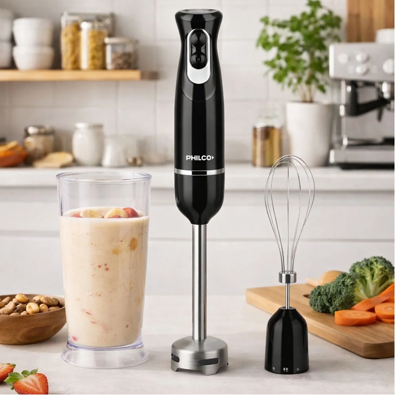 La Licuadora de Mano Philco PH850 / LMPH8507NP es una excelente aliada para quienes buscan potencia, practicidad y versatilidad en la cocina. Su motor de 600 W, combinado con la función Turbo y el sistema 3 en 1, permite resolver múltiples recetas sin necesidad de utilizar otros electrodomésticos.