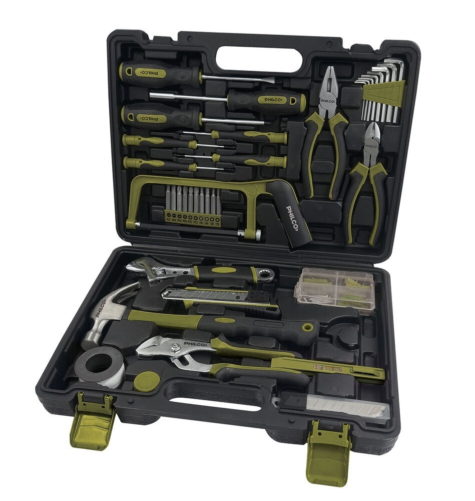 La Caja de Herramientas Philco PSH102VE1P es una solución completa, compacta y versátil para todo tipo de trabajos. Su completo surtido incluye herramientas esenciales para electricidad, carpintería, montaje y mantenimiento general, permitiendo afrontar múltiples tareas con comodidad y precisión.