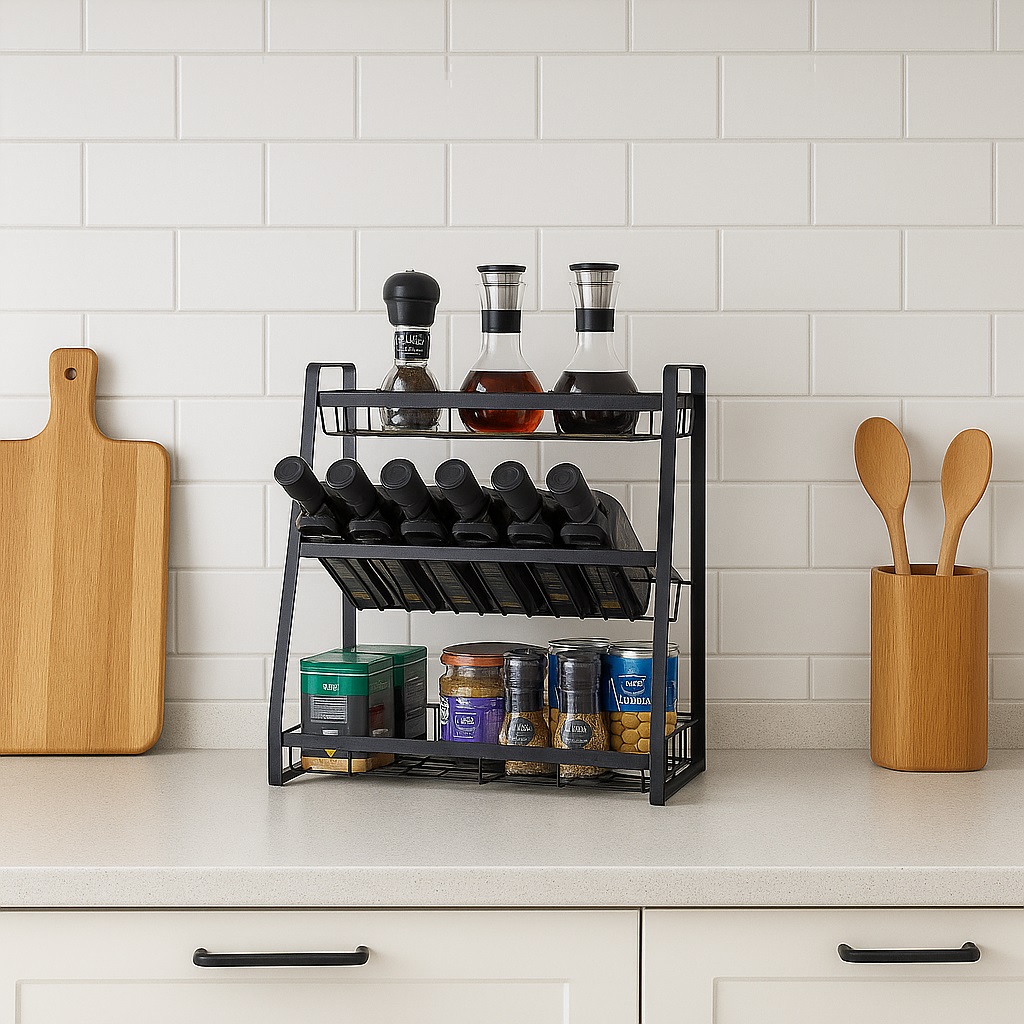 El Especiero Crystal Rock CR15609 es una solución práctica y funcional para mantener la cocina ordenada. Su diseño metálico de tres niveles permite aprovechar el espacio vertical y tener condimentos y frascos siempre a mano.