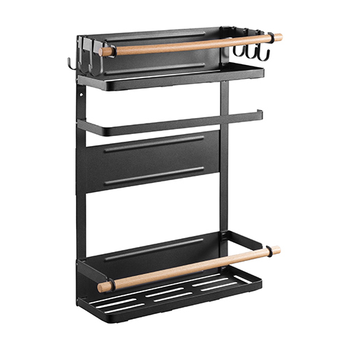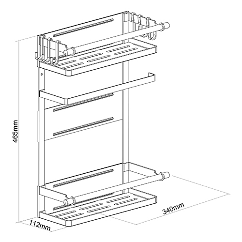 Su diseño multifuncional permite organizar especias, aceites, frascos, botellas y rollos de papel, manteniendo todo al alcance y bien ordenado. Los ganchos desmontables amplían aún más las posibilidades de uso, adaptándose a distintas necesidades del hogar.