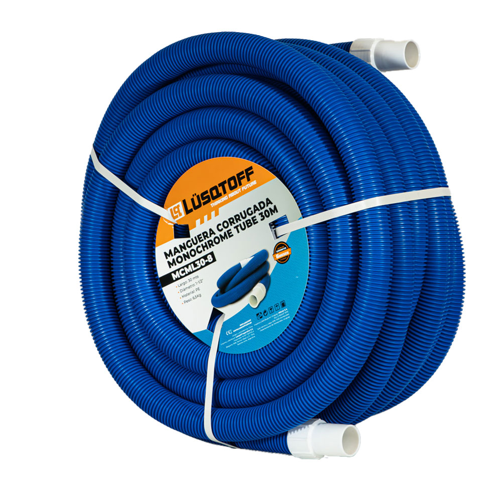 La Manguera Corrugada Monochrome Lüsqtoff MCML30‑8 es una opción práctica y confiable para aplicaciones en piscinas y exteriores. Con 30 metros de largo y un diámetro de 1½”, permite cubrir amplias superficies con comodidad.