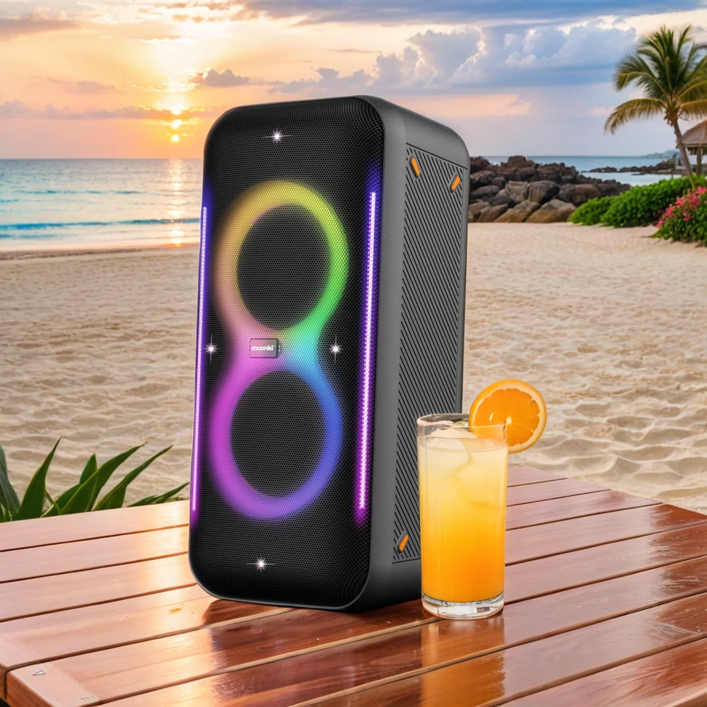 El Moonki Bossa Max MW‑PB320 es un Party Speaker completo, pensado para quienes buscan potencia, conectividad y espectáculo visual en un solo equipo. Sus 100 W RMS, combinados con doble woofer con luces LED, generan un sonido fuerte, claro y envolvente.
